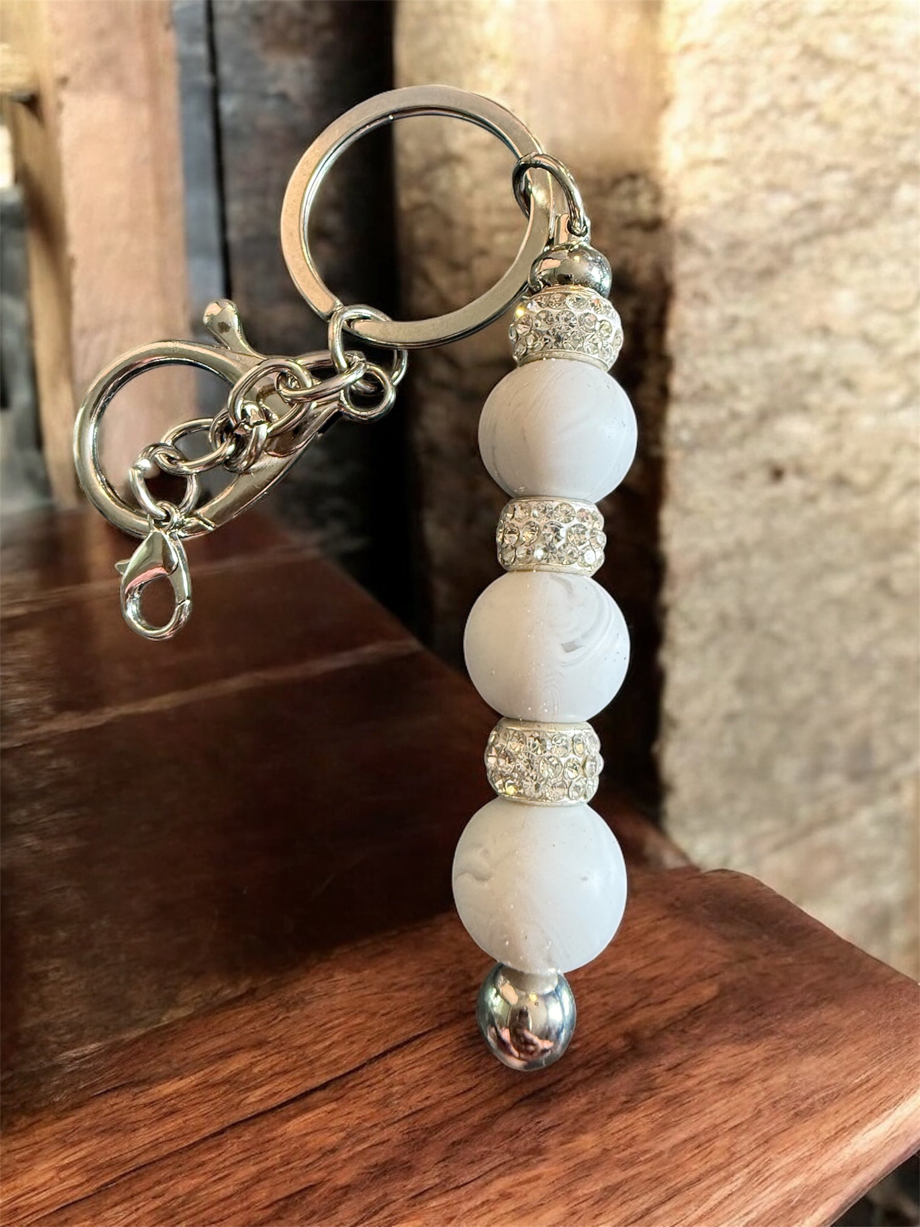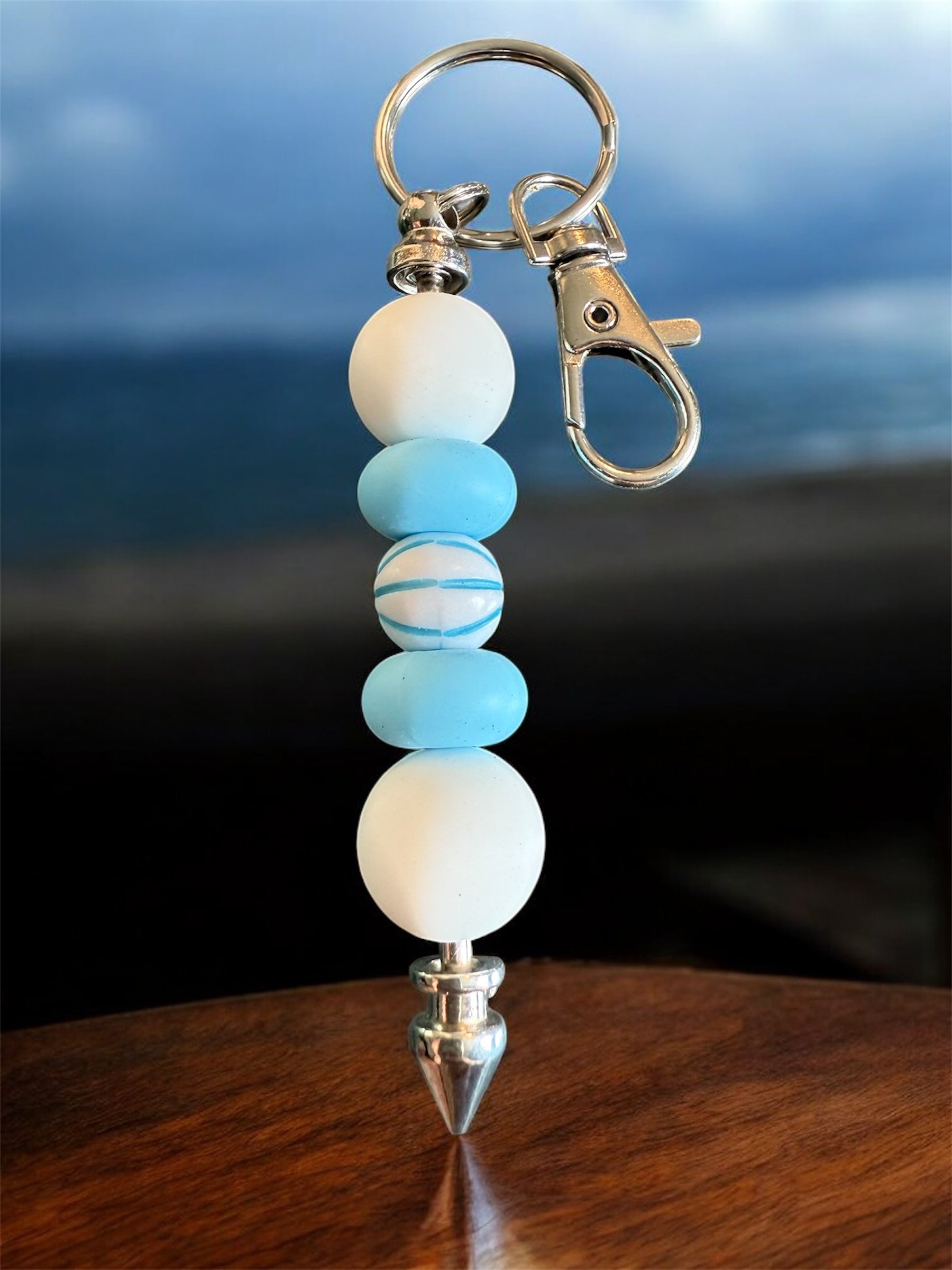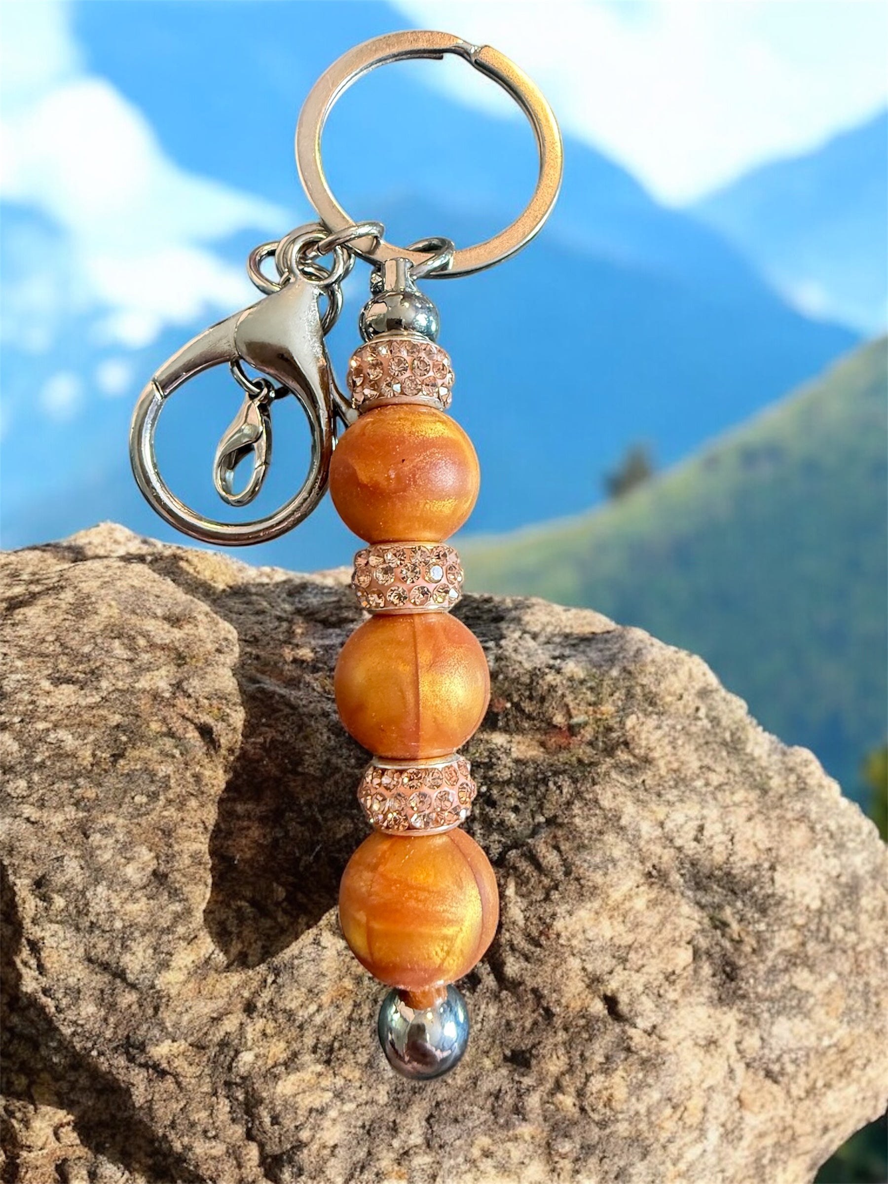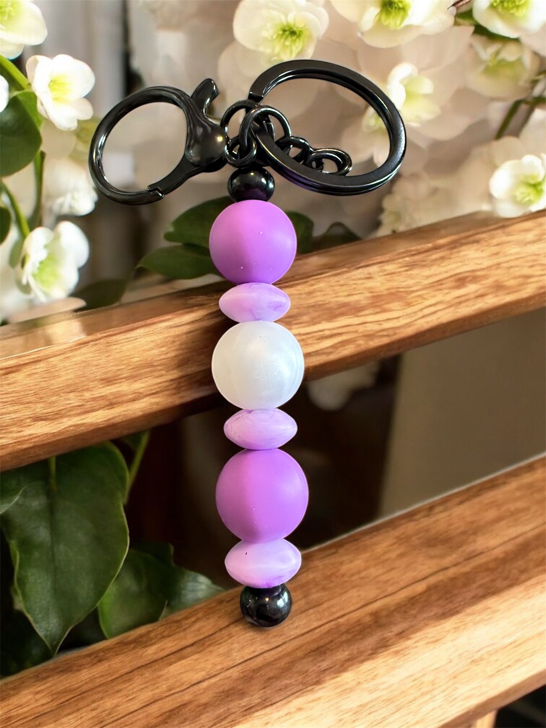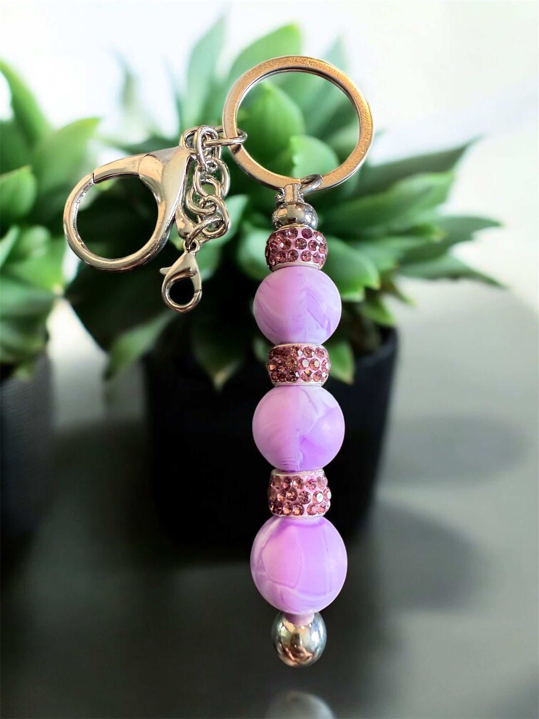 Customized keychains with colorful beads and a focal bead to add to the decoration. Each keychain has the hook and the clasp for that safe attachment to your keys, purse or backpack!